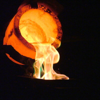 The gold is then melted using an induction furnace. This smelting process liquefies the metal, prior to final testing.
